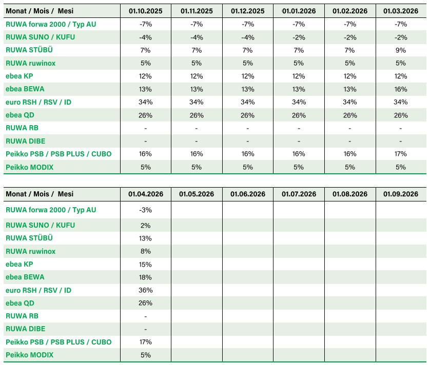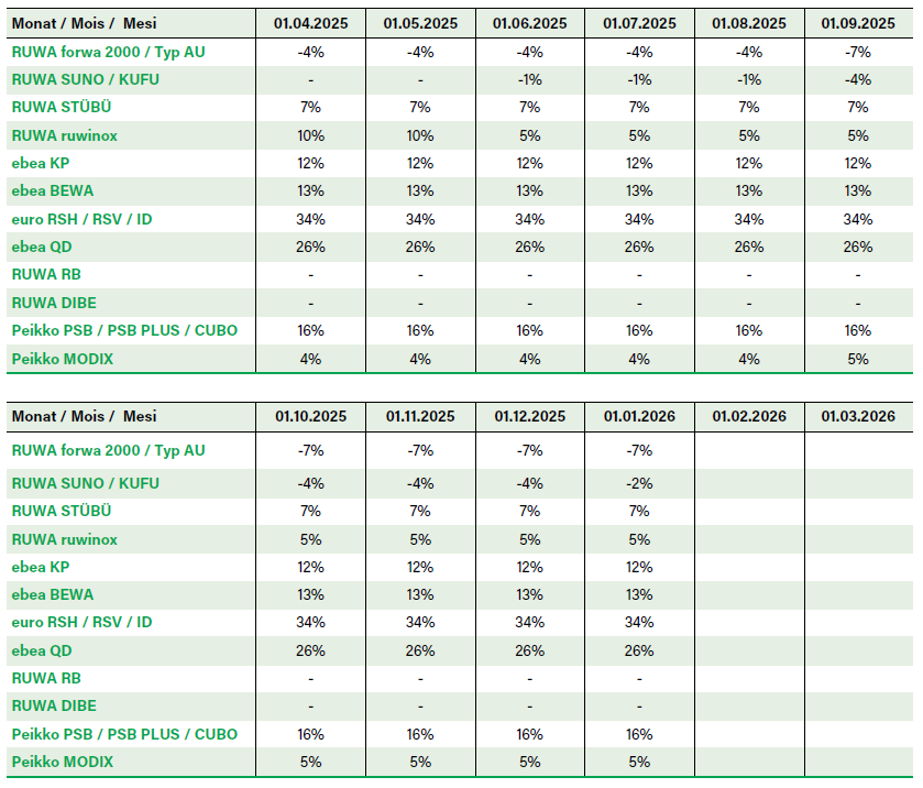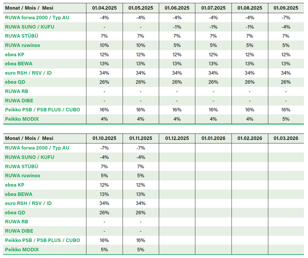 Nel link per il download qui sotto troverai una panoramica dei prezzi lordi attuali dei nostri prodotti di reti, dei vari accessori di rinforzo e dei supplementi.